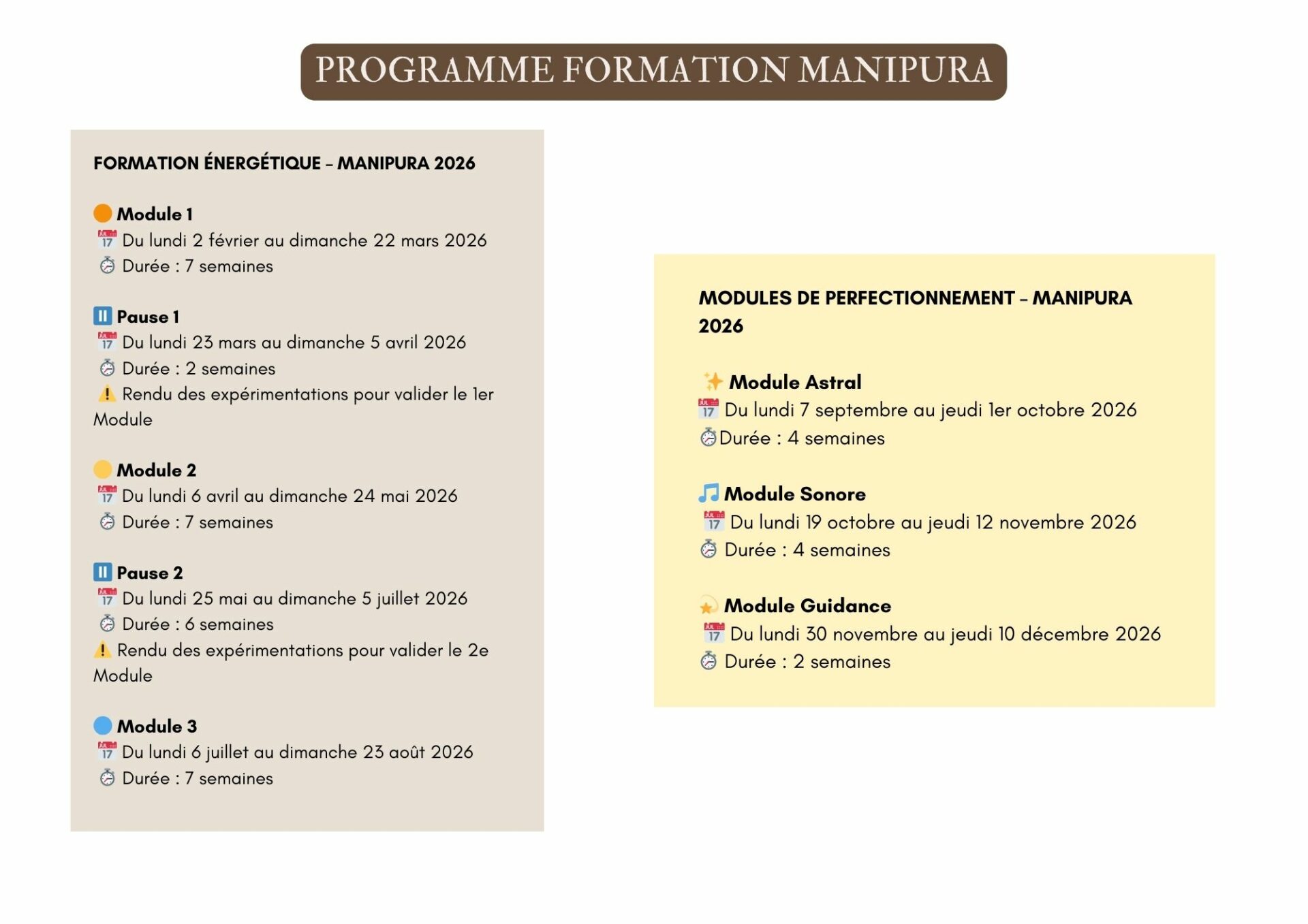La 6e édition en 2026 commencera en février et se terminera fin août, avec des pauses inclues (voir le calendrier de formation)